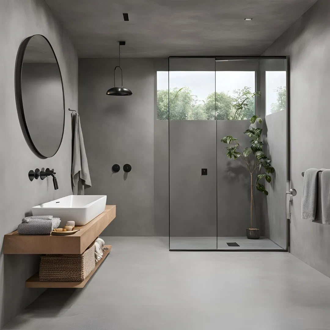 Handcrafted microcement finishes for bathrooms, floors, feature walls and more — built for daily life, not just photos.